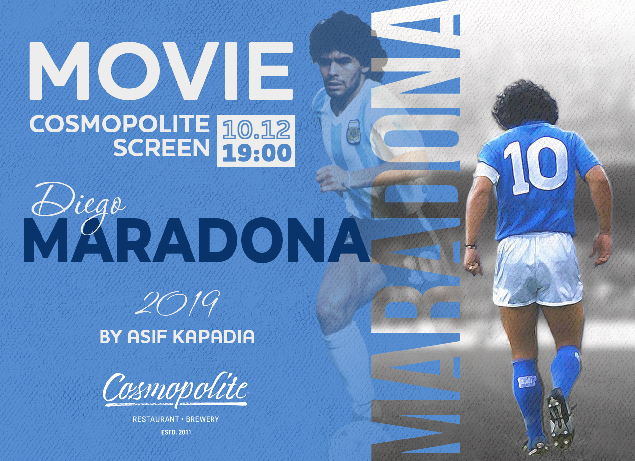 10th December, Thursday, 7 PM - we dedicate this evening to the most talented genious of the world football - Diego Maradona - and the movie by Asif Kapadia.