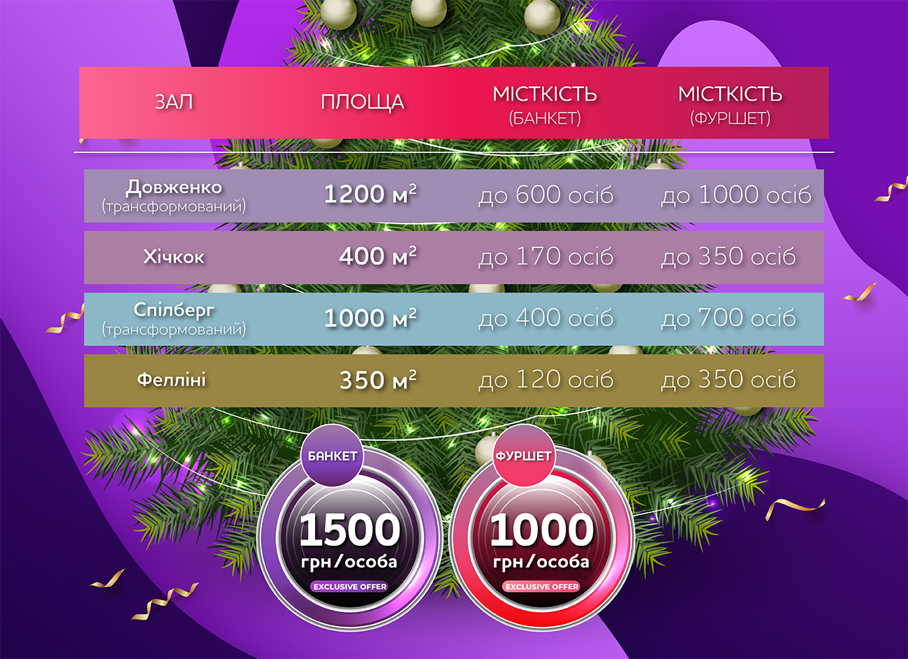 Грудень - час новорічних святкувань у колі колег. Пропонуємо зали для будь-яких заходів у найбільшому конгрес-холі України.