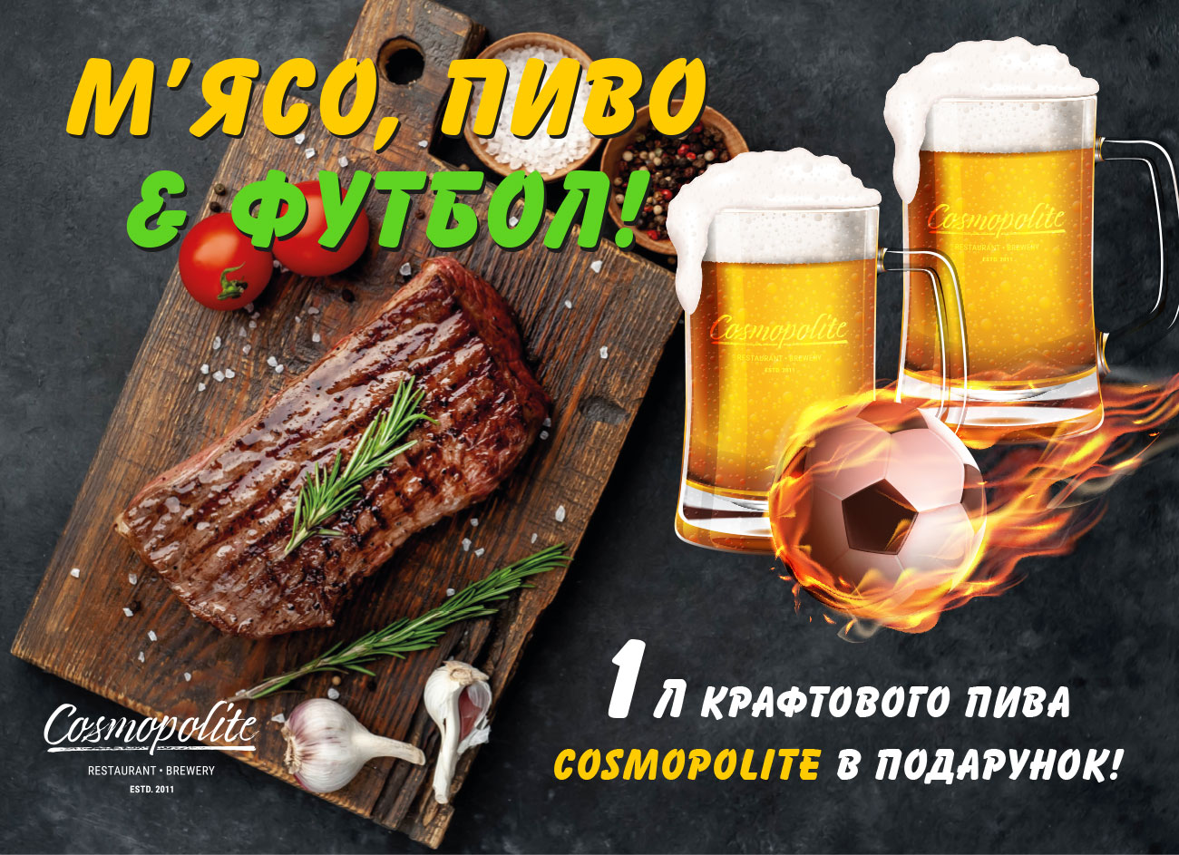 М'ясо, пиво та футбол - три обов'язкові елементи Cosmopolite, магніти, що притягують гостей нашого ресторану-броварні.