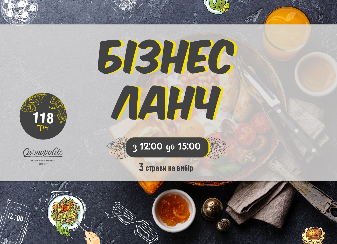 Ланч в Cosmopolite. По будням. С 12 до 15.