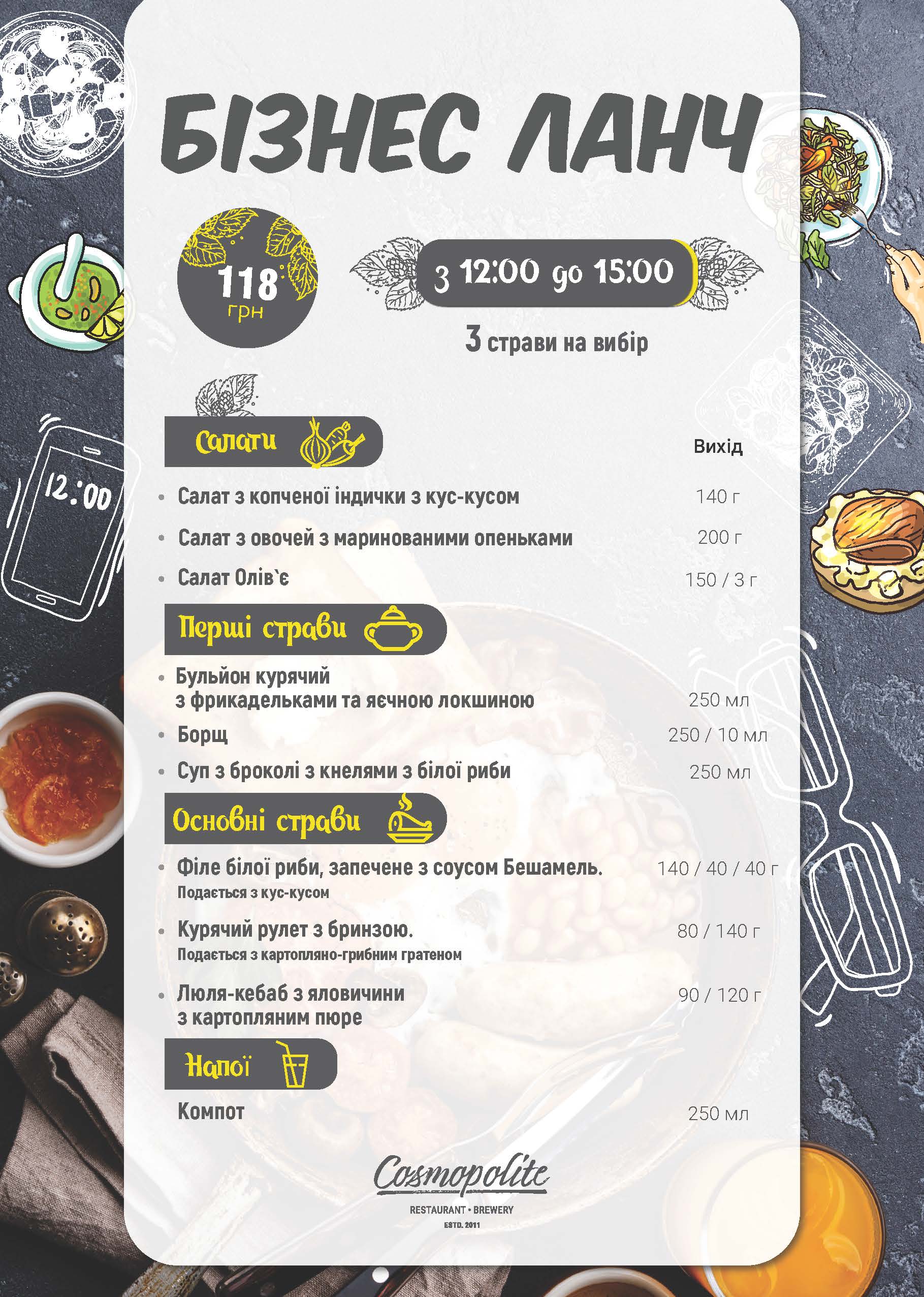 Стоимость ланча - 118 гривен.
