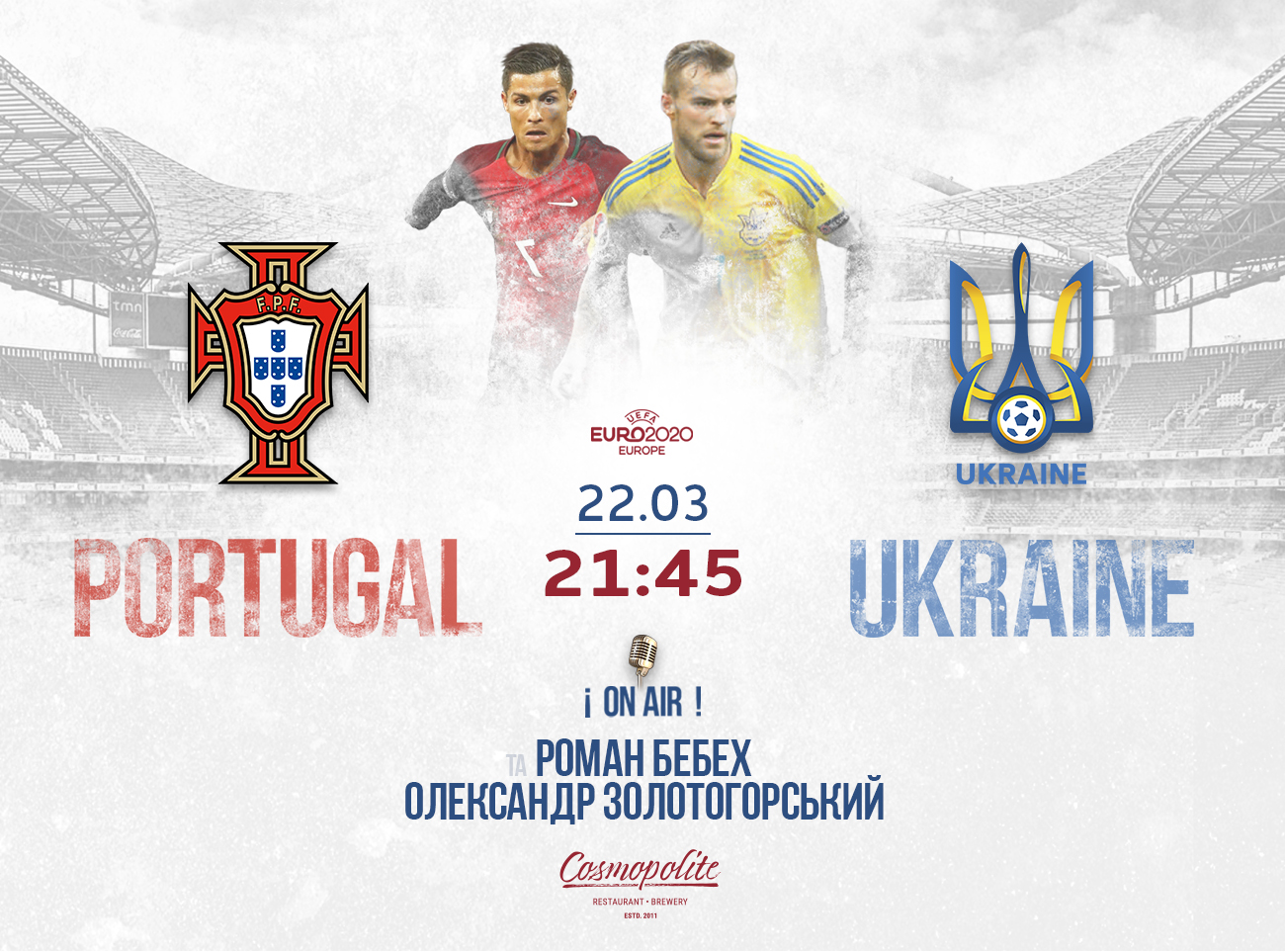Ресторан-пивоварня Cosmopolite приглашает всех на футбольный праздник - поединок Национальной команды Украины против сборной Португалии в рамках отбора к Чемпионату Европы 2020 года.
