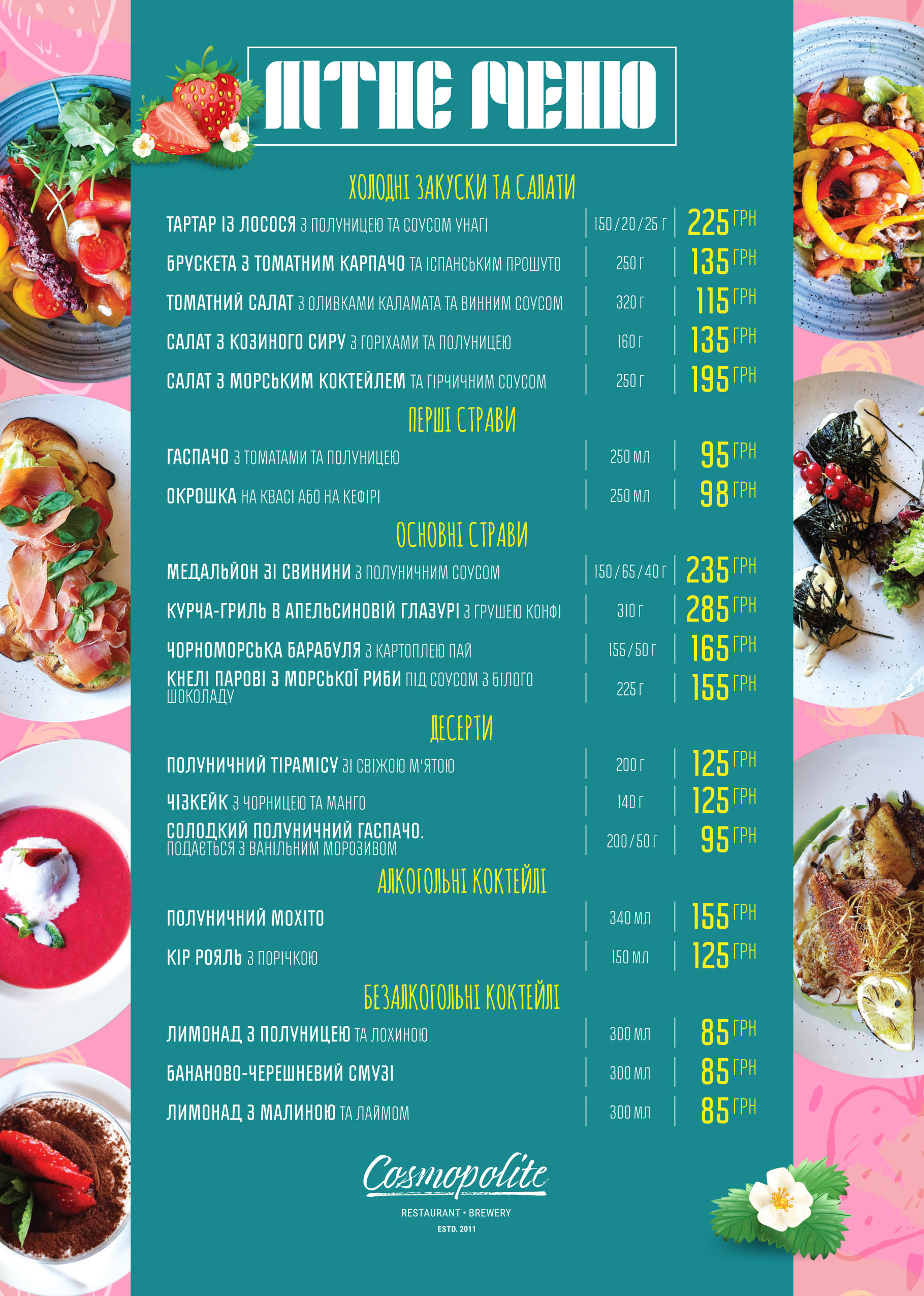 Смотрите полное меню по ссылке и бронируйте столики в Cosmopolite: