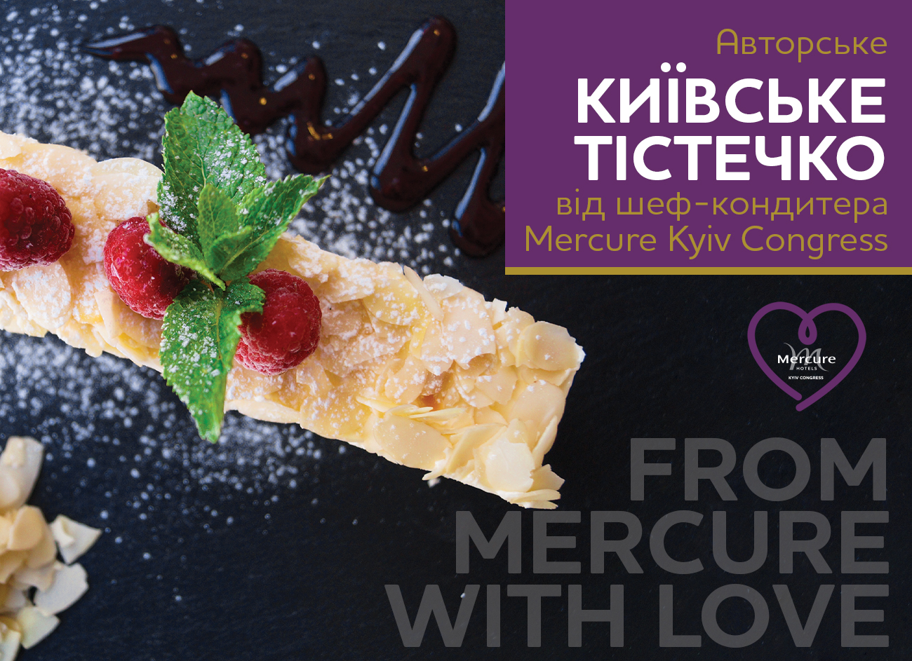 Насолодіться вишуканим смаком Київського тістечка в оновленому лобі барі готелю Mercure Kyiv Congress за чашкою чаю або кави.