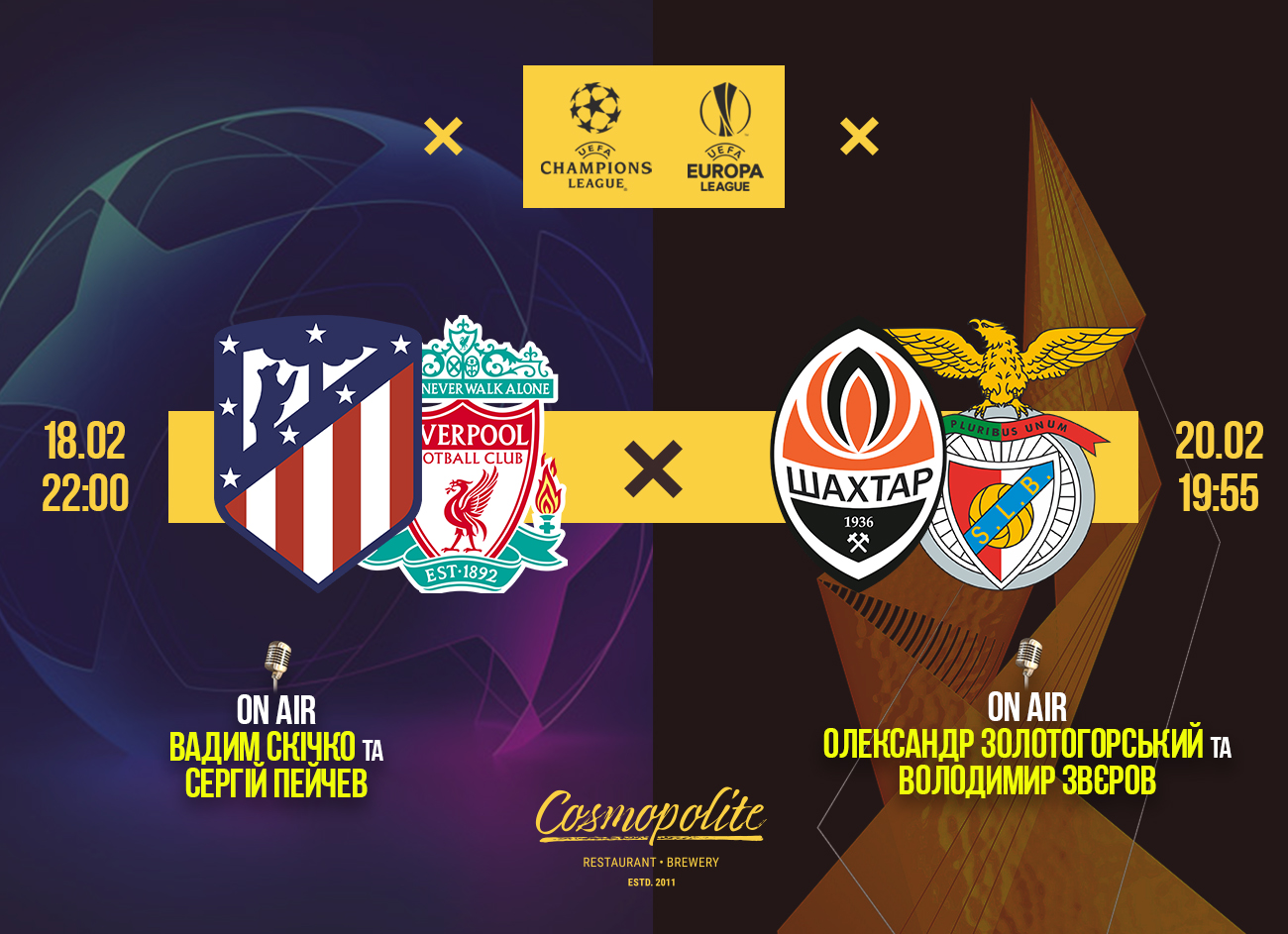 Цього тижня дивимось найкращі матчі європейських клубних турнірів - на великому екрані в ресторані Cosmopolite!
