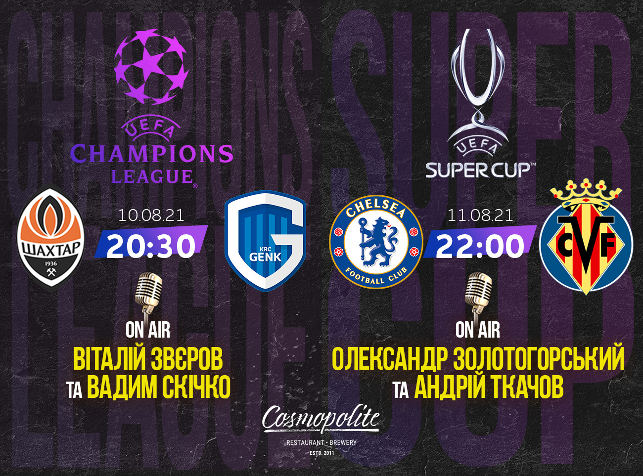 Запрошуємо на перегляд цих матчів в прямому ефірі, в супроводі коментаторів і футбольних експертів! Буде напруження емоцій, крафтове пиво, професійний аналіз гри, і звичайно - призи і подарунки!