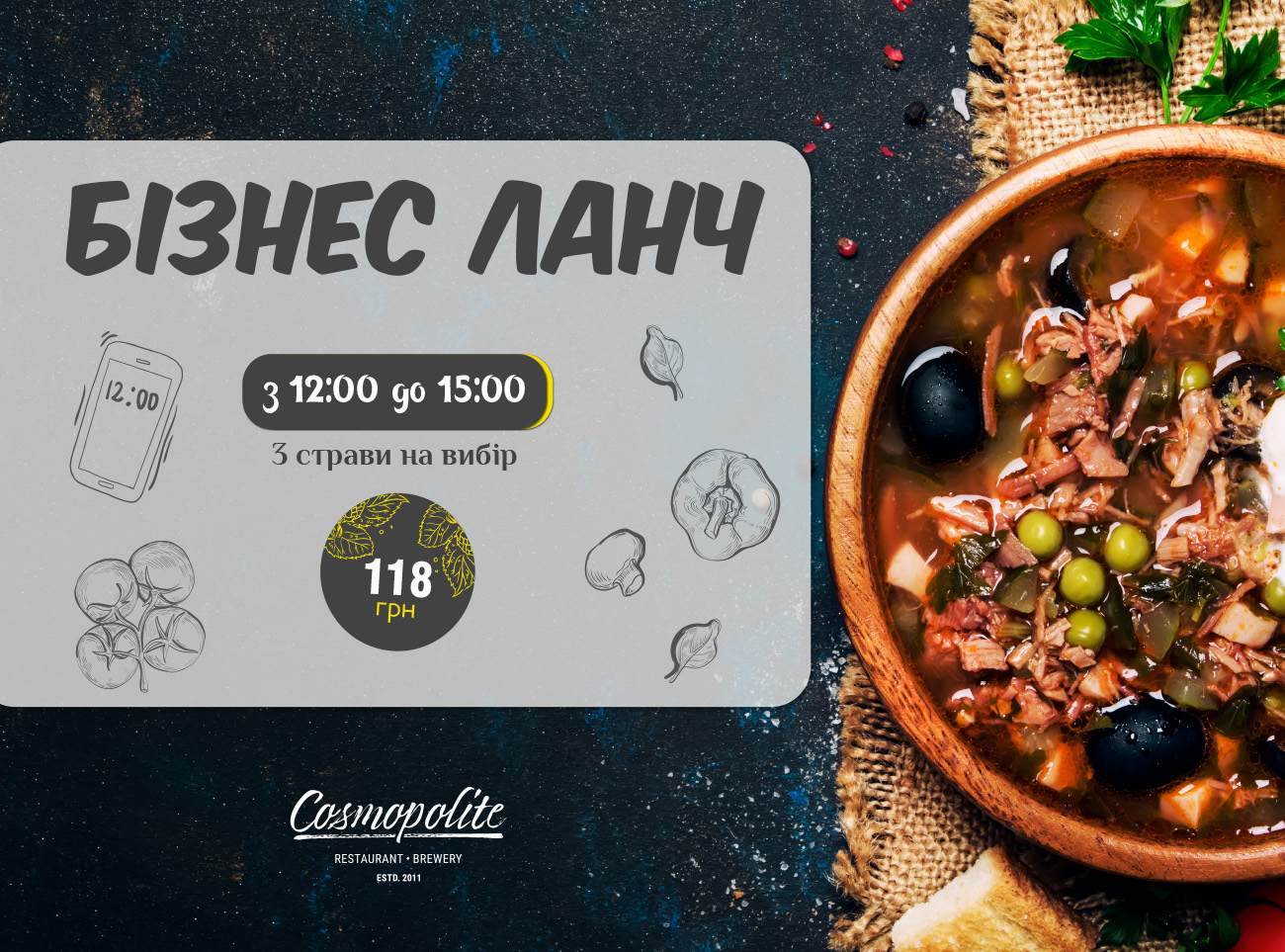 Ланч в Cosmopolite. По буднях. З 12 до 15.