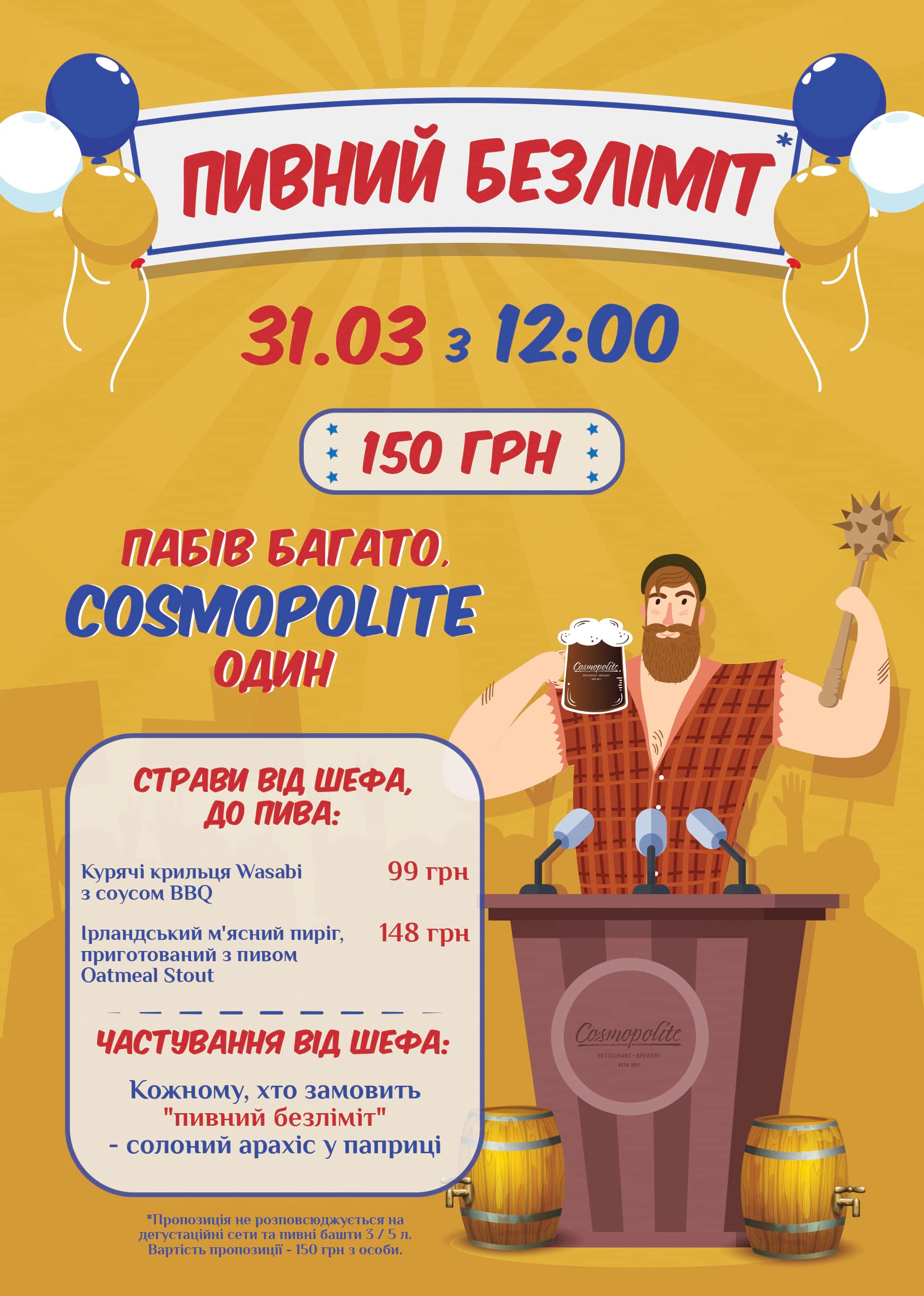 День Виборів. Пивний Безліміт у Cosmopolite!