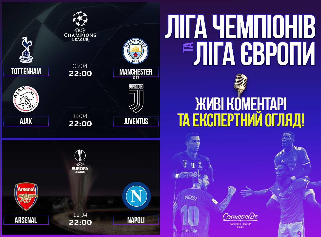 - І 11 квітня - Ліга Європи: Арсенал - Наполі, 22:00