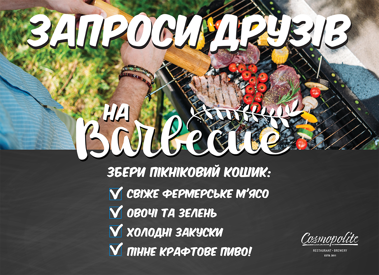Свіже фермерське м'ясо, мариноване рибне філе, овочі, холодні закуски, і, звичайно, фірмовий Beerbox з крафтовим пивом всіх сортів, що виробляються у броварні Cosmopolite, - все це входить в перелік набору для пікніка, який ви можете зібрати самі!