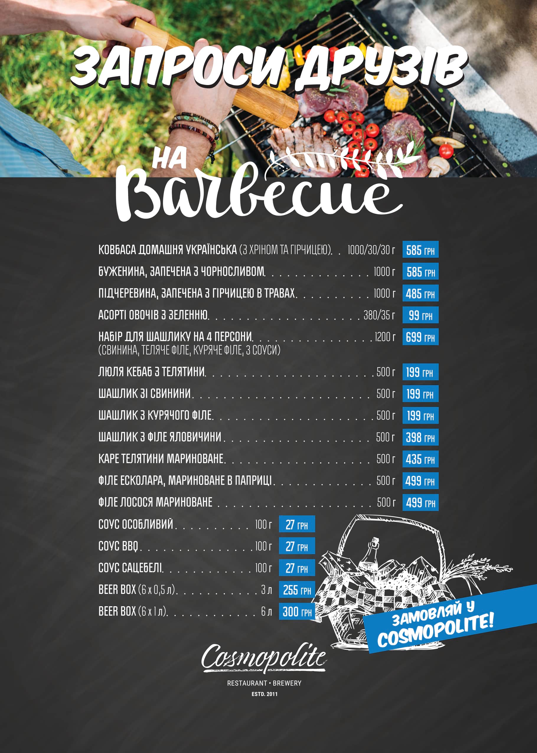 А те, чим ви їх пригощатимете - варто вибрати в Cosmopolite. Не турбуйтеся про маринад, процедуру підготовки і нарізки страв - ми все вже зробили за вас.