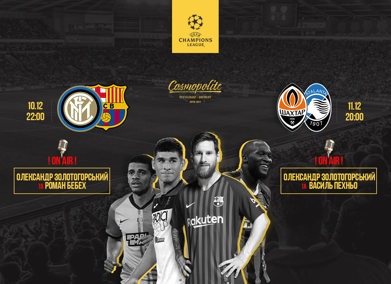 Пряма трансляція буде показана на великих екранах ресторану-броварні Cosmopolite.